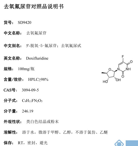 产品名称: Doxifluridine;去氧氟尿苷/5'-脱氧-5-氟尿苷